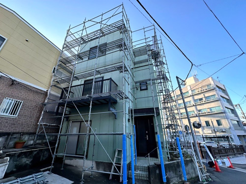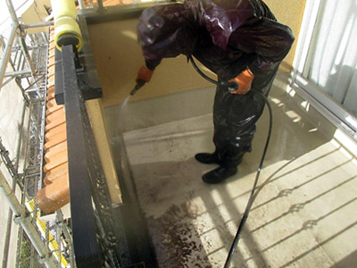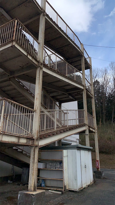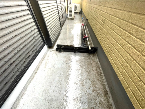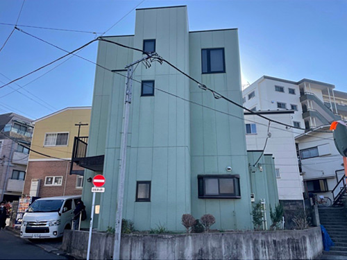 こちらの建物はALCという壁素材を利用しており防音・断熱性が高いのですが、反面水に弱く塗装が非常に重要な素材です。
