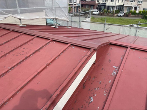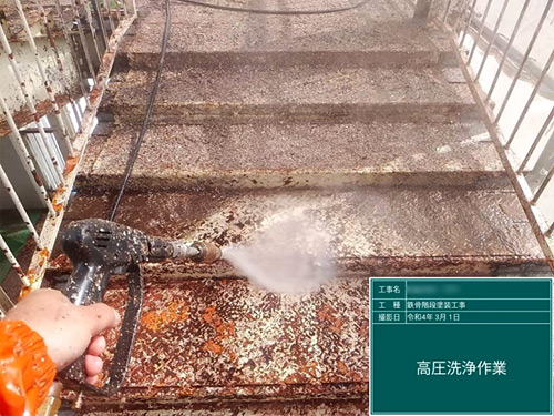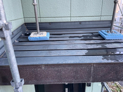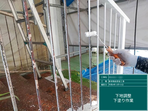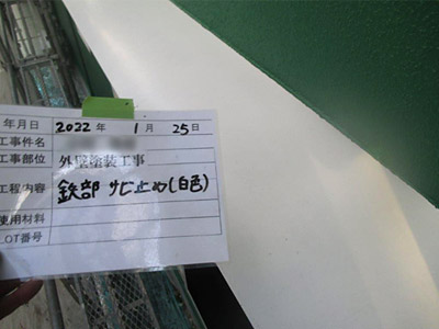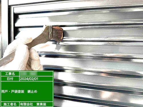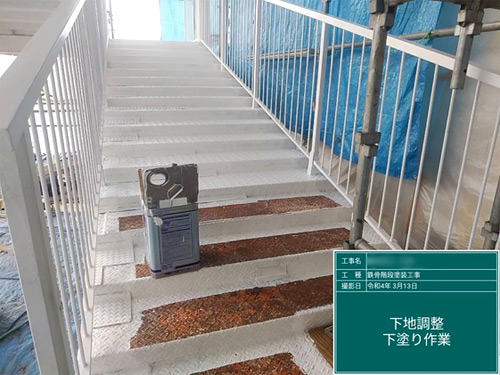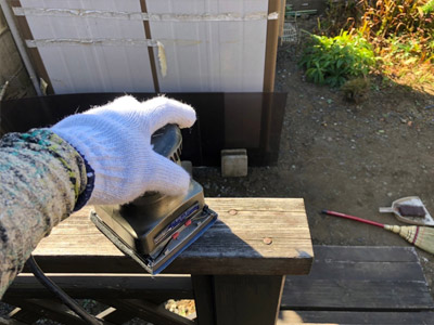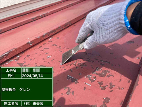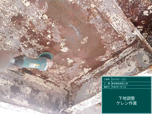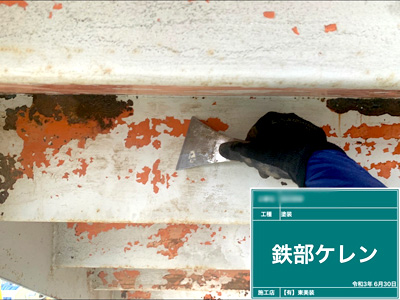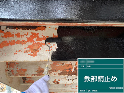 既存の塗装を剥がし、錆止めを行います。