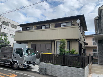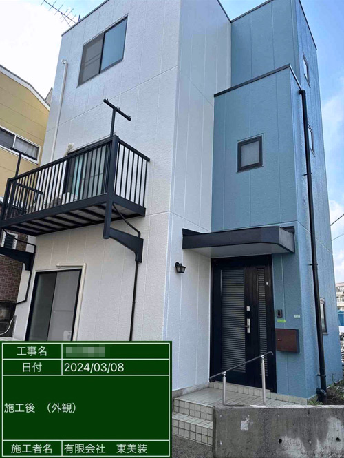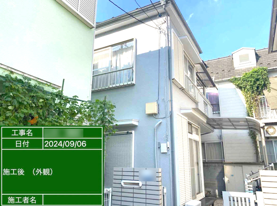 洗浄から補修、シーリング、外壁塗装だけでなく鉄部の錆止め・塗装まで一通りの施工をお願いされた例です。