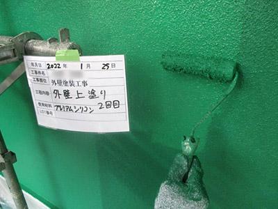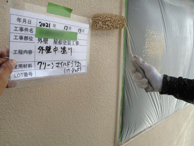 下塗り・中塗り・上塗りの各工程において、丁寧にムラなく当社では施工を行います。