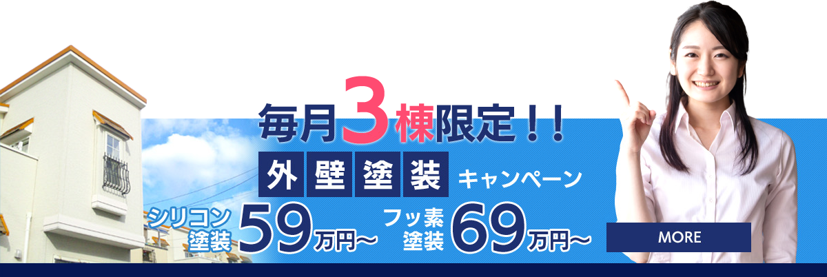 東美装では現在、毎月3棟限定の外壁・屋根塗装のキャンペーンを行っております。
